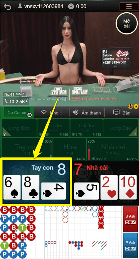 Ví dụ :  bạn đã cược tay con thì kết quả ra là bên tay con 8 điểm, taycái 7 điểm bên con thắng